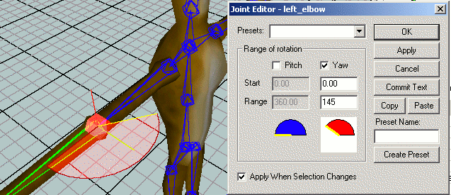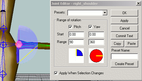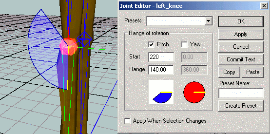 The joint editor provides a graphical way of setting the range of motion for a bone. Whenever the joint editor