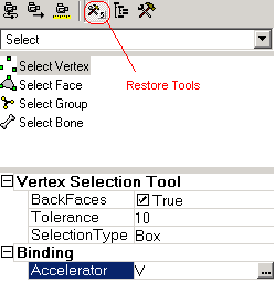 can perform several different operations in succession without going back and forth from the 3-D view and the Tool list. If the Restore Tools